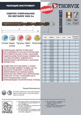 Сверло спиральное по металлу HSS, ø 6,5 мм Thorvik TDB065K5